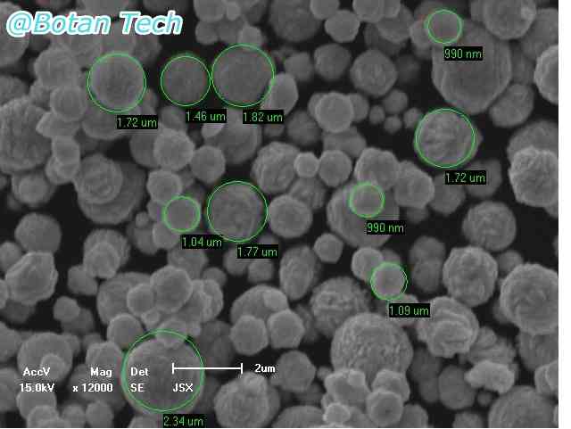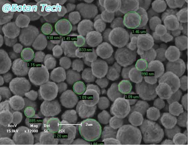 | 分級(jí)后細(xì)粉 | ![]() | 激光粒度儀測(cè)量結(jié)果 d10=1.072um d50=1.454um d95=2.167um |